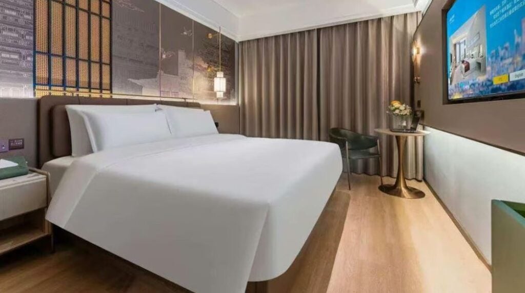 Tucked within the lively OCT Creative Park, XW Hotel is all about modern aesthetics and quiet luxury. Designed for both work and chill, the interiors are minimalist with clean lines, soft lighting, and plush bedding that makes you want to linger just a little longer. It’s a favorite among creatives and business travelers who want a break from the city buzz.
