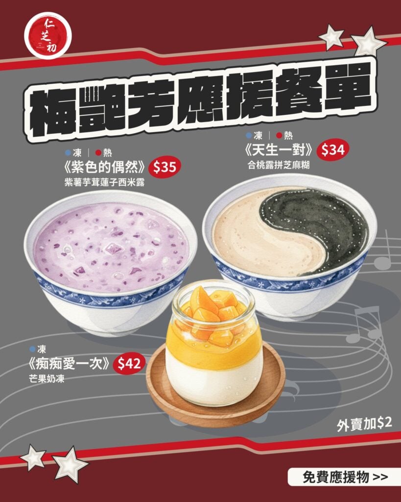 主打90後手工甜品,每日使用新鮮食材嘅仁芝初位於旺角女人街,屬於平價之選。經典糖水如燉奶和湯圓、芝麻糊及杏仁露一應俱全。每一款甜品都散發住濃濃手作氣息。行入舖頭,簡約又帶文青感嘅裝潢,加上陣陣甜香,令人一踏入就心情放鬆。