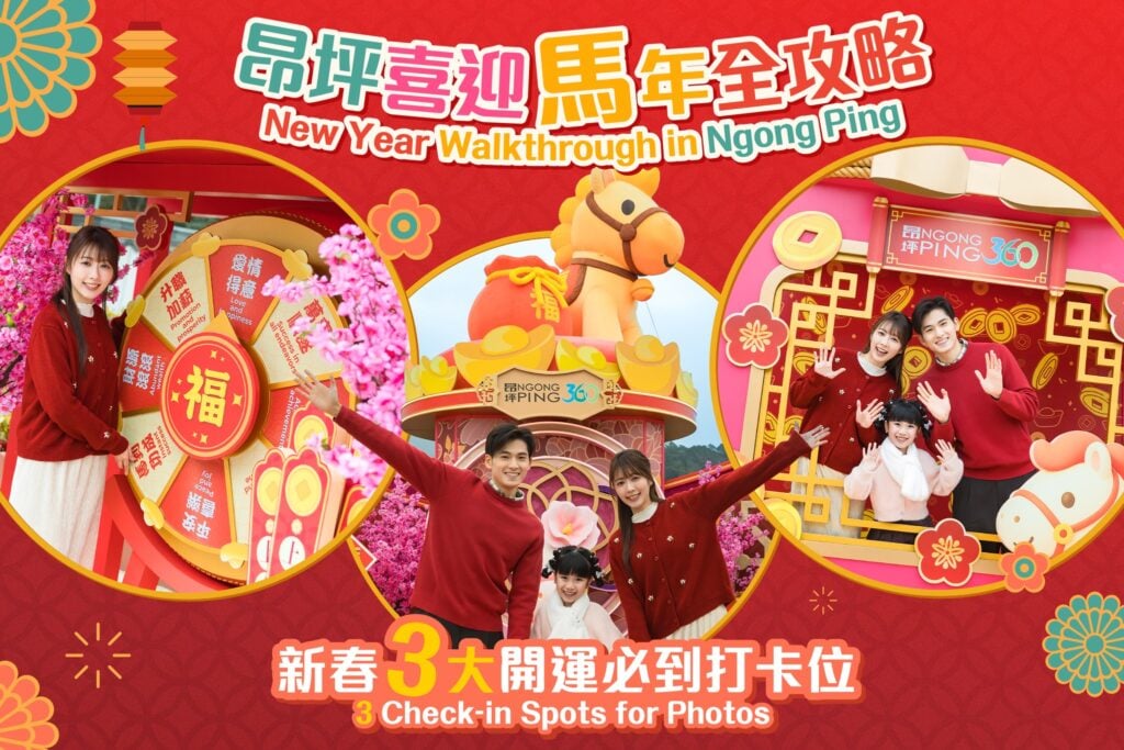 想影靚相又想行吓運,上大嶼山昂坪啦。今年昂坪360「駿馬躍動迎新春」同麥玲玲師傅合作,搞咗個超有風水feel嘅馬年慶典。「金駿」裝置有5隻馬代表「五福臨門」,金碧輝煌,影相好有氣勢。
