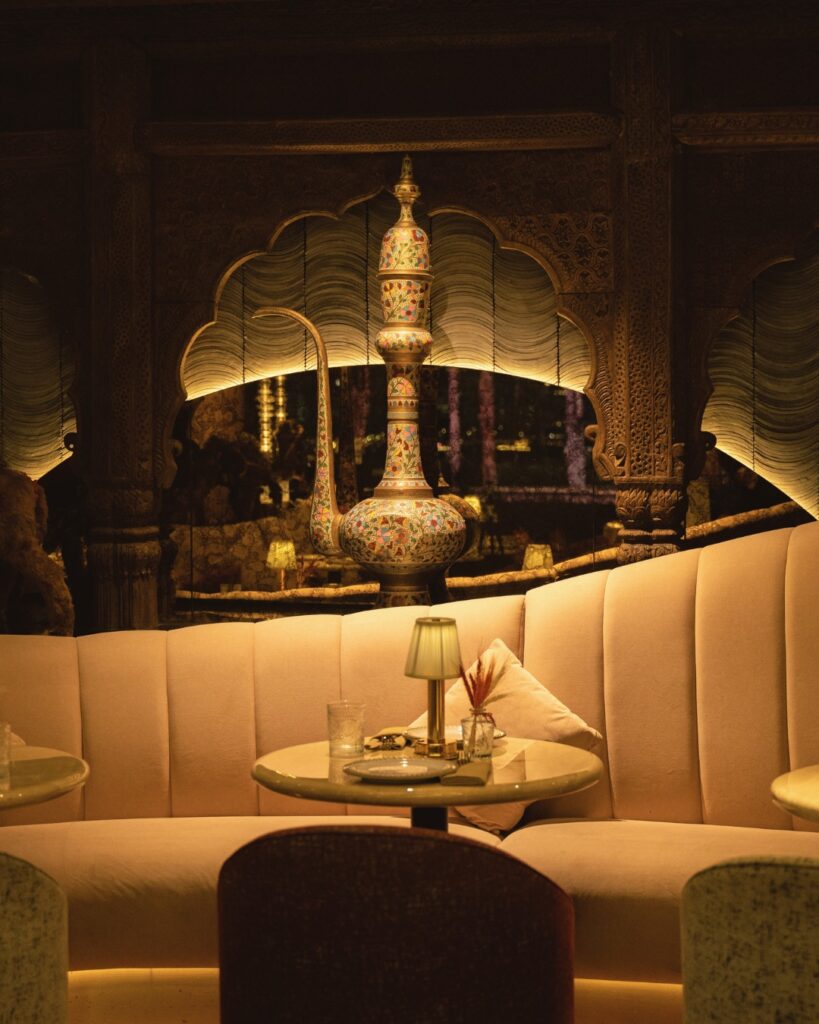 餐廳內部設計由本地著名設計公司 MAG Studio 操刀,融合金色調、獨特曲線和印度木雕風格門板營造出華麗而奢華的氛圍。場地分為兩層,設有戶外露台和水煙區,還有VIP包廂及表演區,晚上常有DJ和肚皮舞表演,重現貝魯特夜生活的熱鬧氣氛。酒水方面,由獲獎調酒師Sandeep Kumar規劃,呈獻特色阿拉伯風味雞尾酒。