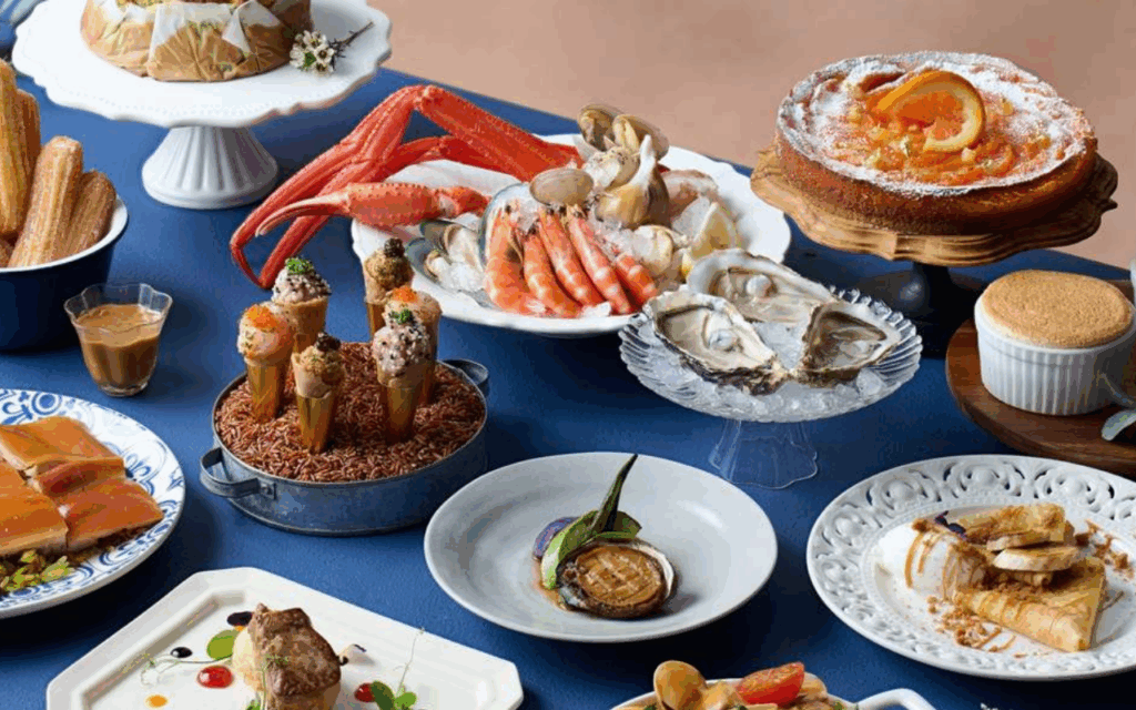 而酒店內的The Promenade自助餐廳一直都是經典,主打多款新鮮海鮮和中西美食:即開生蠔、波士頓龍蝦、蟹腳、帶子刺身,還有烤羊架和香煎鴨肝等豐富選擇。甜品區是甜品控天堂,芒果拿破崙和12款Mövenpick雪糕任食,讓你一試難忘。