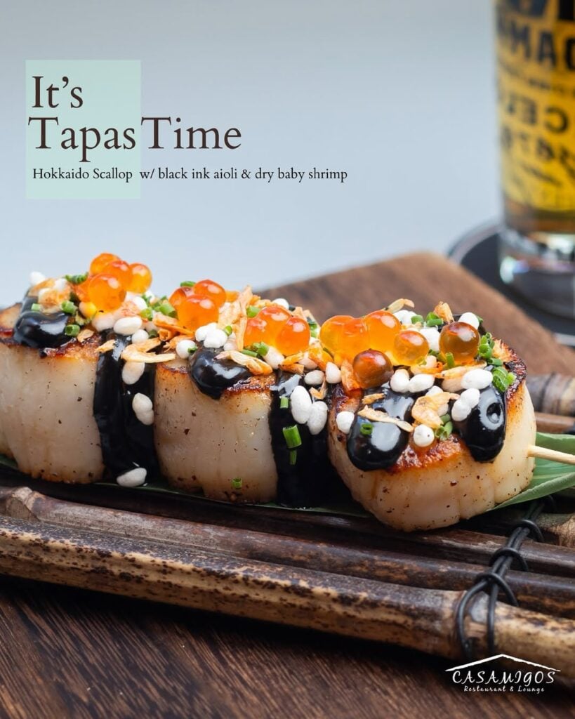 菜單融合了傳統西班牙菜和國際創新元素。價格相當親民,部分tapas由HK$45起。招牌推介包括:醃肉芝士拼盤、燒墨魚、鍋燉海蜆、西班牙烤無骨乳豬、特色西班牙薯仔蛋餅、墨魚汁西班牙海鮮焗飯及羊奶芝士蛋糕等。