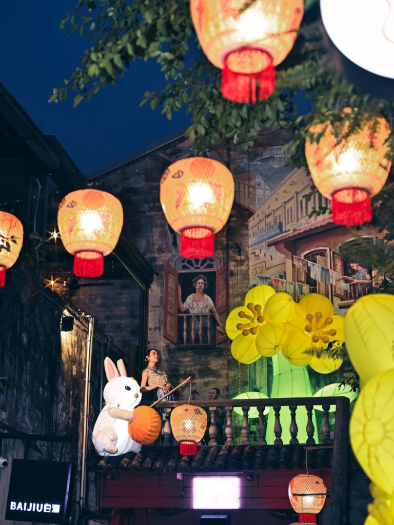 走进鬼仔巷,感觉像被拉回旧时光。窄窄的小巷、剥落的墙皮、泛黄的招牌,再加上鲜艳的壁画和红灯笼,一下把气氛拉到 60 年代的唐人街。白天光线柔的时候,色彩会显得特别干净,很适合拍伪胶片风的情侣照;晚上灯笼亮起,又多了一层微微发红的朦胧感,随手一拍都是故事感。