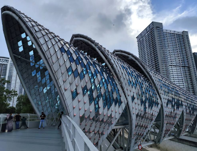 天色刚暗下来,沙洛马桥的灯一盏盏亮起,整座桥像一条发光的彩色隧道,把人从老甘榜拉进 KLCC 的摩天楼之间。灯光一会儿蓝、一会儿紫,走在桥中央,会有种置身未来城市的错觉。这里非常适合拍夜景氛围感的头像:背景是模糊的霓虹,你们的剪影就在中间,简单却很有“剧照感”。