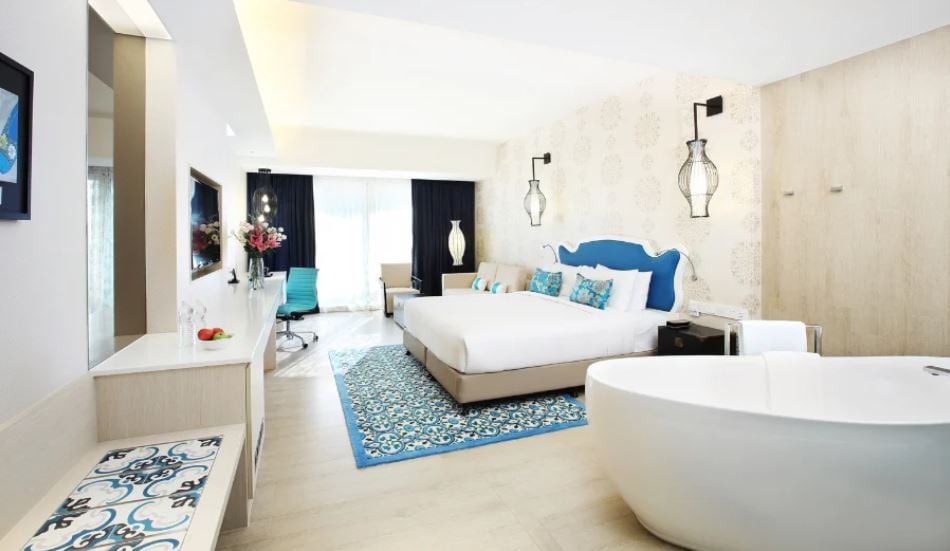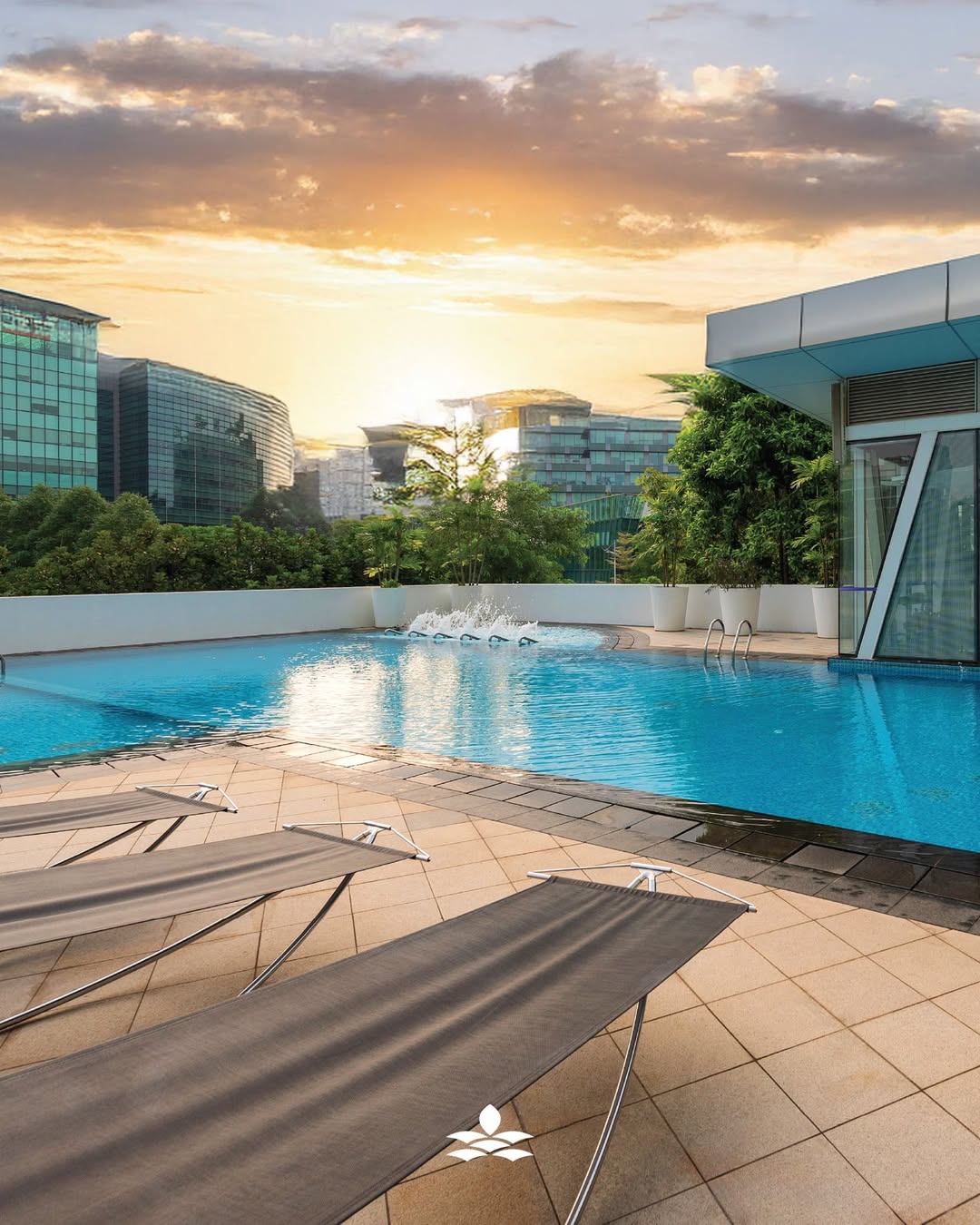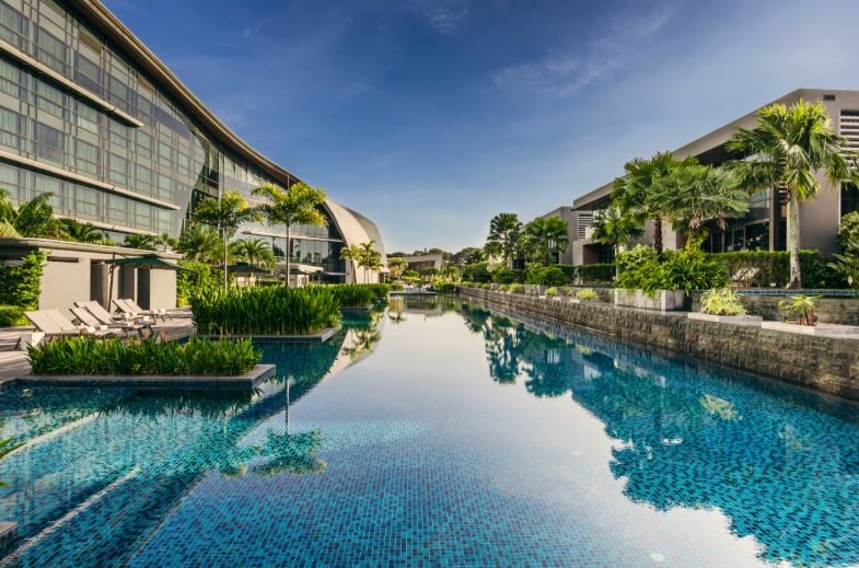 This luxurious Changi Airport Hotel doubles as a tropical resort. Dusit Thani Laguna combines Thai hospitality with resort-style living, surrounded by greenery and a golf course. Expect three swimming pools, tennis courts, a fitness centre, and several dining options that range from international buffets to local favourites.