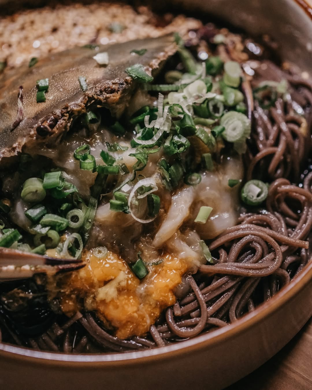 The food matches the energy. Their $21 Spicy Pork Bone Soup comes loaded with tender meat that slides off the bone. The $38 Marinated Crab Buckwheat Noodles are a rare find — sweet, briny crab meat paired with chewy noodles that balance heat and freshness. Average spend here is $30–40 per pax, and with opening hours from 11 AM–3 PM and 5–11 PM daily, you can pop by for both lunch and dinner feasts.