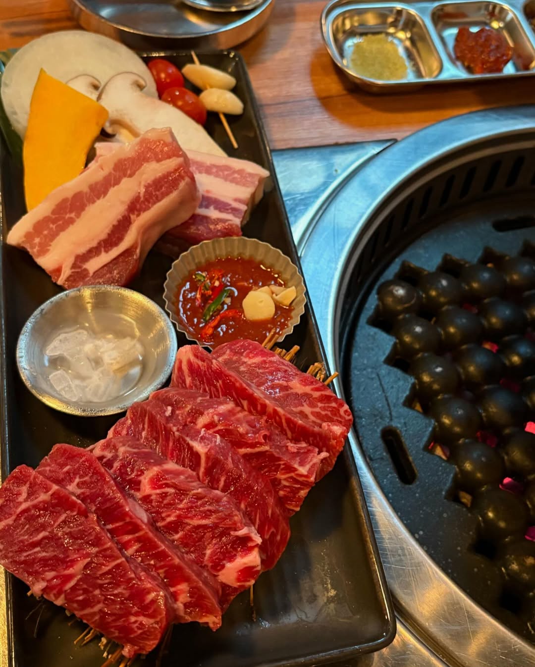 Their $28 Noodle Soup with Seafood comes piping hot in a broth that wakes up your taste buds. For spice lovers, the $55 Squid and Pork Belly Bulgogi is a fiery, smoky plate that goes perfectly with a cold beer or soju. If you’re extra hungry, their eat-all-you-can option at $59 is a steal for unlimited meats and sides.