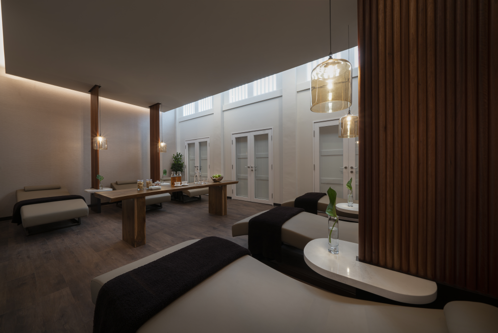 森林像一层天然的屏风,把喧闹隔在海的那边。走进更衣区,Vitality Pool、草本蒸汽室、冰泉与体验淋浴组成“冷热对比”的节奏,身体先被唤醒,再在护理室慢慢沉静下来。