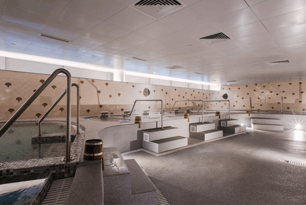 亮点:热池/冷池/蒸汽/桑拿齐全,休息区带个人娱乐系统,还有24/7 点单式简餐;适合通宵放空或长时间复原。公共设施为主。