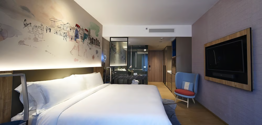 Paradox Singapore Merchant Court at Clarke Quay 自带一种很完整的约会感。Clarke Quay 本身就很会制造情绪,白天是河边的开阔,晚上是灯光和城市声响混在一起的热闹,而这家酒店刚好落在这种氛围里,既接得住外面的 lively,也留得住房间里的安静。你很容易把它安排进一场晚餐之后的 daycation,或者一段“今天想过得特别一点”的约会里。